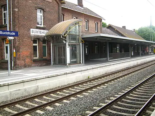 Buxtehude is a railway station in northwestern Germany. The station is located in the town of Buxtehude. It is located on two railway lines: the Lower Elbe Railway, which runs between Cuxhaven and Hamburg, and the Bremerhaven–Buxtehude line of the Eisenbahnen und Verkehrsbetriebe Elbe-Weser (EVB) to Bremervörde (and therefore, to Bremerhaven and Zeven).