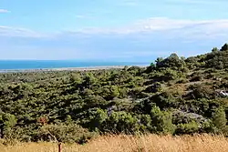 The coast stretches across 180 km and includes the Pyrénées-Orientales, Aude, Hérault, and Gard departments. It is bordered by the Côte Vermeille to the south and Camargue to the east.[1] Along it are a series of lagoons, such as the Étang de Thau, Palavas ponds, and Étang de Leucate.