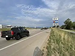 1 I-70 – Denver, Grand JunctionNo southbound access to I-70 east; exit 260 on I-70; mileposts reset[b]