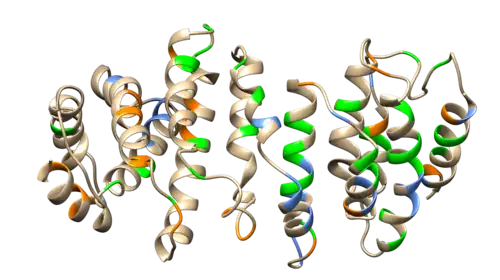 C13orf42 is a protein which, in humans, is encoded by the gene chromosome 13 open reading frame 42 (C13orf42). RNA sequencing data shows low expression of the C13orf42 gene in a variety of tissues.[3] The C13orf42 protein is predicted to be localized in the mitochondria, nucleus, and cytosol.[4] Tertiary structure predictions for C13orf42 indicate multiple alpha helices.[5]
