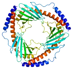 - ^ Jiang, Jianzhong (1999). "rystal structure of human p32, a doughnut-shaped acidic mitochondrial matrix protein". PNAS. 96 (7): 3572–3577. Bibcode:1999PNAS...96.3572J. doi:10.1073/pnas.96.7.3572. PMC 22335. PMID 10097078.