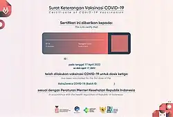 183. ^ Irawan Sapto Adhi (16 May 2022). Irawan Sapto Adhi (ed.). "Sertifikat Vaksin Covid-19 PeduliLindungi Diakui di Semua Negara ASEAN". Kompas.com (in Indonesian). Archived from the original on 17 May 2022. Retrieved 17 May 2022.