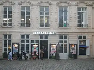 The Café de la Gare (French pronunciation: [kafe la ɡaʁ]) is a dinner theater located at 41, rue du Temple in the 4th arrondissement of Paris. It lies in a square hidden between Notre Dame de Paris and the historic Marais district.[1] It was originally created in 1968 by a close-knit group of comedy actors who fixed up an old factory near the Gare de Paris-Montparnasse in the 14th arrondissement. It was not until 1972 that the Cafe moved to its present location where it has become the largest and most famous[2] fringe theater in Paris with a house that seats 450.