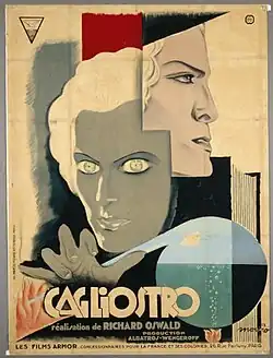 Cagliostro is a 1929 silent drama film directed by Richard Oswald and starring Hans Stüwe, Renée Héribel and Alfred Abel. It depicts the life of the eighteenth century Italian occultist Alessandro Cagliostro, portraying him more sympathetically than in most other works.[2] It was based on a novel by Johannes von Guenther.