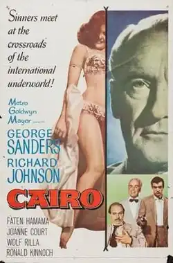 Cairo is a 1963 American crime film starring George Sanders, Richard Johnson, and Walter Rilla. Directed by Wolf Rilla (Walter's son) and written by Joan LaCour Scott, it was released on August 21, 1963, by Metro-Goldwyn-Mayer.[1][2][3] The film is a nearly scene-for-scene remake of John Huston's 1950 film noir, The Asphalt Jungle.