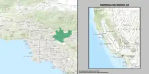 Under the 2020 redistricting, California's 32nd congressional district is located in Southern California. Half of the district covers the westernmost border of Los Angeles County, while the other half extends to the western areas of the City of Los Angeles.