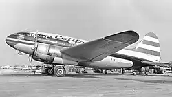 CCA started with four Douglas DC-3s and by January 1951, CCA/ATC had eight DC-3s and two DC-4s, one of which was contracted to the government supporting the Korean War.[13] The airline upgraded to five Martin 2-0-2s (billed as "Martinliners") in 1951, sourced from Northwest Airlines.[14] The 2-0-2s had tricycle landing gear and were significantly faster than DC-3s. An Aviation Week article says CCA sold four DC-3s to local service carrier Parks Air Lines immediately before Parks finally started service in 1950.[15]