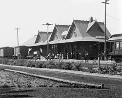 The outside the first Santa Fe Depot in Orange, California, April 23, 1891, at 186 North Atchinson Street, just off of West Chapman Avenue.