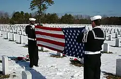 Calverton National Cemetery is a United States National Cemetery in the Town of Riverhead in Suffolk County on eastern Long Island in New York. The cemetery's street address is in Calverton but the property is in the adjacent hamlet of Wading River. It encompasses 1,045 acres (423 ha) and as of the end of 2008 had 212,000 interments.[1]