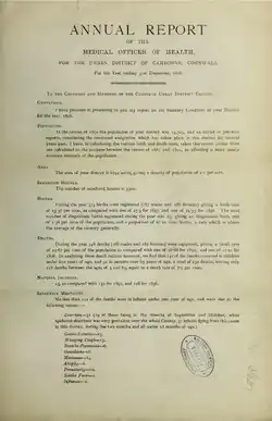 Annual Report of the medical officer of health for the Urban District of Camborne; 1898