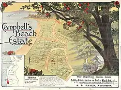 A flyer advertising the sale of allotments at the Campbell's Beach Estate, 1908