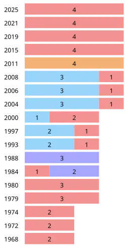| Liberal | 1 | 2 | 0 | 0 | |