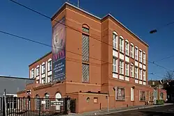 The building, which is over 100 years old, is a former Straßenbahn depot of the Rheinbahn, which was converted in the early 1990 into the theatre. It was inaugurated in early 1996 with a performance of the musical Grease.