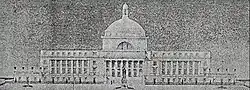 In 1909, the construction rights for the design of Perkins were auctioned, with the lowest bid amounting to $314,429. Exceeding the budget available, its construction was postponed. In 1919, the Legislative Assembly appropriated the sum of $500,000 for the Capitol and directed the Secretary of the Interior, Guillermo Esteves, to proceed with the bidding for the work. Considered to be a structurally and spatially inadequate building that would exceed the budget cap, the design of Perkins was replaced in 1920.[3][9]