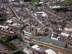 On 25 May 1867 the LNWR opened a new goods station on the site of the old M&CR Crown Street station; the short connecting line involved a flat crossing of the 1862 east-to-north curve now used for NER trains approaching Citadel station. The cramped St Nicholas goods station was closed at this time, but in 1871 the LNWR opened a new cattle depot on the site of the former St Nicholas goods depot, that had closed in 1867.[1][10]