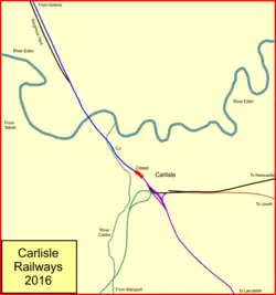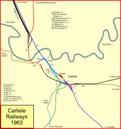 2. ^ a b c d e f g h i j k l m n o p q r s t u W A C Smith and Paul Anderson, Carlisle's Railways, Irwell Press, Wellingborough, ISBN 1 871608 65 1 and 1 871608 73 2 (both ISBNs are printed in the book)