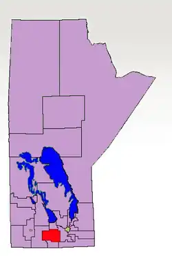 The riding was mostly rural. It included the communities of Carman, Somerset, Treherne, St. Claude, Notre Dame de Lourdes, Miami and Elm Creek. Carman also included the Long Plain Reserve, the Dakota Reserve, the Swan Lake Reserve and the Spruce Woods Provincial Park.