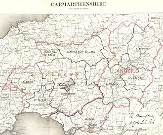 Between 1832 and 1918 Carmarthen was a district of boroughs constituency, consisting of Carmarthen itself and Llanelli, and was sometimes called "The Carmarthen Boroughs". A county-wide constituency also existed, called Carmarthenshire, until 1885 (at which point it was split into East and West).