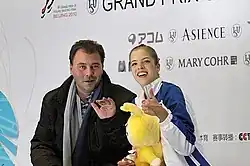 As a top-six finisher at the 2011 Worlds, Kostner was allowed to compete in three Grand Prix events in 2011. She elected to do so and was assigned to Skate America, the Cup of China, and the Trophée Eric Bompard. She was the silver medalist at Skate America and won the Cup of China, thus becoming the first skater to qualify for the Grand Prix Final.[22] Kostner then won the silver medal at the Trophée Eric Bompard. In an interview after the event, she stated that her knee was fully recovered and her goal was to include more difficult jumps in the 2012 ISU championships.[2] Kostner posted season's-best scores in the short program (66.43) and the free program (121.05) to win her first-ever gold medal at the Grand Prix Final; her overall score of 187.48 was a new personal best.[28] She is the first Italian single skater to become a Grand Prix Final champion and the second overall after Barbara Fusar-Poli / Maurizio Margaglio, who won the ice dancing title in 2000.