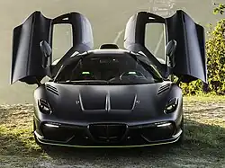 The Aero3 is a car introduced by Touring Superleggera in 2020. Its prominent rear fin was inspired by the aerodynamic berlinetta of the 1930s, particularly the Alfa Romeo 8C 2900B Berlinetta Speciale Le Mans. The Aero3's streamlined design features a rear spoiler and no rear window.[15]