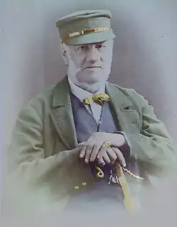 A Royal Engineer, Carter retired in 1887 upon receiving the honorary rank of colonel. He lived for a time at Siam House, Weymouth, Dorset.[25] In 1893 he was granted renewed arms by the Lord Lyon King of Arms, and formally changed his name to Carter-Campbell of Possil.[25][26] He subsequently lived with his wife and children at the family residence of Fascadale, in the parish of South Knapdale in Strathclyde (now Ardrishaig, Lochgilphead, Argyllshire).[27]