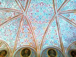 After many changes of ownership over the centuries, it came into the hands of the Conti family, who in 1922 had the house restored by the architect Piero Portaluppi, who heavily modified its appearance, but rediscovered part of the original frescoes.[4] The façade was completely redone and incorporated four medallions with sculpted portraits of the Sforza family by Pompeo Marchesi, while the fourteen lunettes frescoed with busts of the Sforza family are preserved from the original structure, believed to be the work of Leonardesque painter Bernardino Luini, now in the rooms of the Castello Sforzesco Museums, and some frescoes in the 15th-century courtyard, whose portico has umbrella ceilings with eight segments.[2]