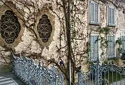 Detail of the railing of the staircase leading to the garden of Casa Atellani in Milan