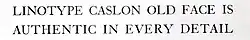 Caslon 471 was the release of the "original" Caslon type sold by American Type Founders.[59] American Type Founders advertised it as "the Caslon Oldstyle Romans and Italics precisely as Mr. Caslon left them in 1766.[60] It was apparently cast from electrotypes held by American Type Founders' precursors.[59] Thomas Maitland Cleland drew a set of additional swash capitals.[56]