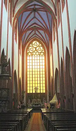 Cathedral of St. Mary Magdalene (Polish: Katedra św. Marii Magdaleny we Wrocławiu) in Wrocław, Poland, is a gothic church located between Szewska and Laciarska street close to the central market square, established in the 13th century. It serves as a cathedral of the Polish Catholic Church led by Piotr Mikołajczak. Along with the Old Town of Wrocław, it is listed as a Historic Monument of Poland.[2]
