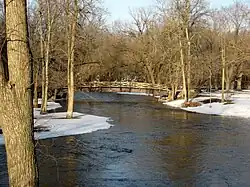 - Covered Bridge Park: A 12-acre park maintained by Ozaukee County and contains the last 19th century covered bridge in Wisconsin, which spans Cedar Creek. Constructed in 1876, the bridge was once one of over 40 covered bridges in the state and was used for wagon and automobile traffic until 1962. It was listed on the National Register of Historic Places in 1973 and is now used only for pedestrian traffic.[33] The park also has picnic and fishing areas and canoe access points.[34]