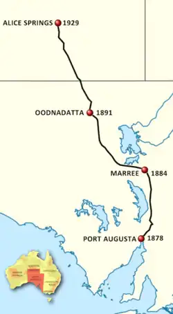 2. ^ "Port Augusta-Oodnadatta railway". The Advertiser. Adelaide. 24 October 1925. p. 16 – via National Library of Australia.