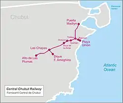 The Central Chubut Railway (in Spanish: Ferrocarril Central del Chubut) was a British-owned company that built and operated a 1,000 mm (3 ft 3+38 in) metre gauge railway line in the Argentine province of Chubut in the Patagonia region at the end of the 19th. century.