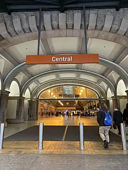 Central is a heritage-listed railway station located in the centre of Sydney, New South Wales, Australia. The station is Australia's largest and busiest railway station, and is a major transport interchange for NSW TrainLink inter-city rail services, Sydney Trains commuter rail services, Sydney Metro services, Sydney Light Rail services, bus services, and private coach transport services. The station is also known as Sydney Terminal (Platforms 1 to 12). The property was added to the New South Wales State Heritage Register on 2 April 1999.[4] It recorded 85.4 million passenger movements in 2018 and serves over 250,000 people daily.
