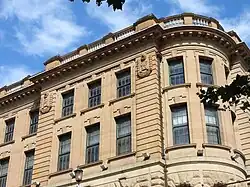 Central station was designed by the government architect, Walter Liberty Vernon. The new station was built on a site previously occupied by the Devonshire Street Cemetery,[12] South Sydney Morgue, the Convent of the Good Samaritan, the Sydney Female Refuge, police barracks and superintendent's residence (on Pitt Street), Christ Church Parsonage, the Benevolent Asylum (fronting Railway Square), a steam train depot (at the corner of Pitt Street with Garden Road), as well as some residential properties on Railway Place.[4] The convent, female refuge and police barracks were all original part of "Carters Barracks", built in 1819 to house convict gangs working as carters on the brick fields. The adjacent field which is today Belmore Park was known as the "police paddock", after the police barracks.
