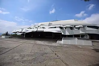 The Centro Cultural Miguel Ángel Asturias, commonly called Teatro Nacional, is a cultural center in Guatemala City, Guatemala. It is located in the Centro Cívico (Civic Center) of the city and was built in the same place of the old Fuerte de San José. Its form, which emulates a seated jaguar,[1] stands out from the adjacent buildings. The complex, which was designed by the architects Efrain Recinos and Carlos Alberto Haeussler was completed in 1978.[1]