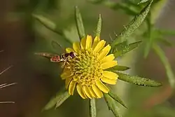 Centromadia pungens is an herb up to 120 cm (47 in) tall. It produces arrays of numerous yellow flower heads with both ray florets and disc florets.[6][7][8]
