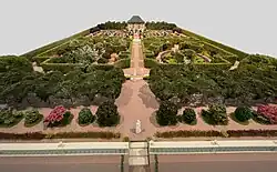 The pavillon du Trèfle, also known as the maison du Trèfle was constructed in 1739 by Emmanuel Héré de Corny. Inspired by Chinese pagoda architecture, this Chinoiserie pavilion was entirely made out of wood. It received its name "trèfle", meaning "clover leaf", due to its trefoil-layout. The silhouette of its roof was inspired by Chinese architecture. The building was made out a round salon with about seven metres in diameter, with a tiled floor. It was decorated with painted scenes with Chinese motifs and painted scagliola. It was furnished to be a comfortable place with a sleeping chamber with an alcove, a bathroom and a garde-robes. The upper floor was a belvedere lookout point where you could see the "bas bosquets", also called nouveaux bousquets,[16] created under Stanislaus, in between the river Vezouze and the canal.[16][14]
