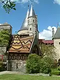 Château de La Rochepot (French pronunciation: [ʃato la ʁɔʃpo]) is a 12th-century feudal castle of neo-Gothic-Burgundian style, rebuilt in the 15th century. In the 19th century, it was completely restored and covered with glazed burgundy tiles. It is located in the commune of La Rochepot in the Côte-d'Or department, Bourgogne-Franche-Comté, France.
