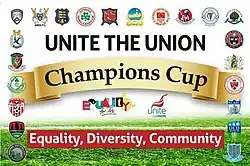 The Champions Cup (known as the Unite the Union Champions Cup for sponsorship purposes) was a cross-border association football super cup, run for a single edition in 2019, that featured the league champions from both football associations on the island of Ireland. The competition saw the League of Ireland Premier Division champions from the Republic of Ireland face the NIFL Premiership champions from Northern Ireland. The Champions Cup was the successor to the Setanta Sports Cup, the previous all-Ireland competition which ran from 2005 until 2014. The Champions Cup was sponsored by Unite the Union, the British and Irish trade union.[2] The 2019 edition was the only one contested and, as of 2022, there was reportedly little prospect of the competition returning.[3]