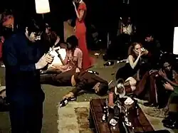 The video was filmed on May 30 and 31, 2000, at a rented mansion in the Hollywood Hills, rather than at Moreno's home as originally planned.[22] It depicts Deftones performing at a party while not being the central focus.[15][22] The video opens with a shot of a rundown room, with single-use plastic forks visible. Moreno then appears and begins to sing. When the camera zooms in on him, he is alone, but in the next shot, he is surrounded by people. Many of the people in the video appear joyless and fatigued. A model featured in the video described the premise as resembling a group that had been "up on drugs for three days".[22] Cohen added that "They blend in with their surroundings, but don't quite belong, as none of the band members seem to be acknowledged by anyone they're playing for." Friedlander occasionally cuts away to scenes of the band performing alone in a living room.[15] The video concludes as it began: with Moreno alone and the house still in disarray. Writing for Kerrang!, Mike Rampton noted that aside from some static effects and the use of single-use plastic, the video remains "impressively un-dated", observing that the fashion and tone still feel contemporary despite the time that has passed since its release.[22]