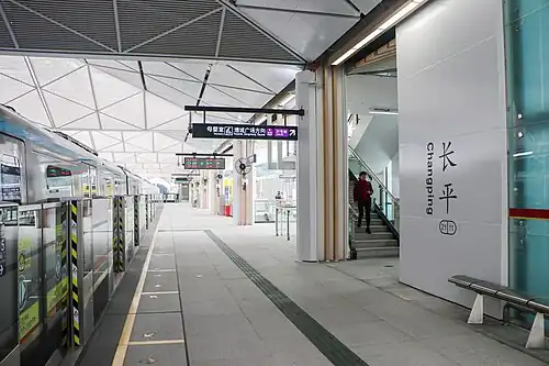Changping Station (Chinese: 长平站; pinyin: Chángpíng Zhàn) is an elevated station on Line 21 of the Guangzhou Metro that became operational on 20 December 2019.