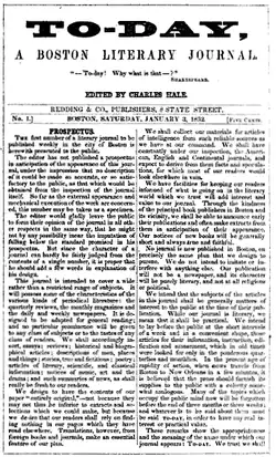 - To-Day: a Boston Literary Journal. v.1 (January–June, 1852); v.2 (July–December, 1852).