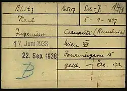 Registry card of Charles K. Bliss as a prisoner at Dachau Nazi Concentration Camp