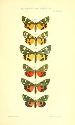 Oberthür named forty-five new genera of insects, forty-two of them moths.[4] A large number were species from North Africa and Asia. In 1913, he received the Cuvier prize from the Academy of Sciences.