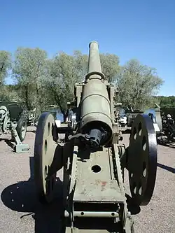 Between 1877 and 1881, de Bange developed several artillery pieces, such as the De Bange 90 mm cannon (field artillery, 1877), the De Bange 80 mm cannon (mountain artillery, 1878), the De Bange 120 mm L cannon (siege artillery, 1878), De Bange 155 mm L cannon (siege artillery, 1877), De Bange 155 mm C howitzer (siege artillery, 1881), as well as mortars for siege warfare, such as the 1880 De Bange 220 mm mortar, 1885 De Bange 270 mm and coastal batteries such as the De Bange 240 mm and De Bange 270 mm. Several of these weapons were used during the colonial wars of the end of the 19th century, during the First World War and also sometimes during the Second World War. As with other cannons, the de Bange cannons had the disadvantage of being slow to fire, as they were affected by recoil, and thus had to be re-aimed after every shot. This inconvenience would be solved with the appearance of the famous Canon de 75, that had a hydro-pneumatic recoil mechanism, which kept the gun's trail and wheels perfectly still during the firing sequence. However, there were two howitzers the Obusier de 120 mm C modèle 1890 and Obusier de 155 mm C modèle 1890 with de Bange breeches and recoil mechanisms designed by Captain Louis Henry Auguste Baquet. From 1882 to 1889, de Bange was Director of the Cail Manufacturing Corporation (Société Anonyme des Anciens Etablissements Cail),[10] the forerunner of the Société française de constructions mécaniques, where he worked on weapon design and trade, selling guns to such countries as Serbia.[11]
