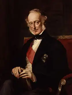 Wood served as Chancellor of the Exchequer in Lord John Russell's government (1846–1852), where he opposed any further help for Ireland during the Great Famine there. In his 1851 budget, Sir Charles liberalized trade, reducing import duties and encouraging consumer goods. This reduction in tariffs led to a noticeable increase in consumption. In the succeeding Tory government, the new Chancellor Benjamin Disraeli, a former protectionist, referred to Wood's influence on economic policy in an interim financial statement on 30 April 1852, setting a trend for the way budgets are presented in the Commons.[2] For Wood, Disraeli was 'petulant and sarcastic', qualities he disliked.[3]