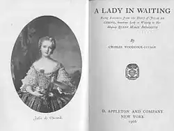 In 1906, Charles, Freiherr von Woodcock-Savage, published A Lady in Waiting: Being extracts from the diary of Julie de Chesnil, sometime lady-in-waiting to her Majesty, Queen Marie Antoinette (New York: D. Appleton and Company). He dedicated it "To a Noble Soul I Knew and Loved and Mourn." The King had died in 1891. The introduction gives a circumstantial account of the yellowed pages found locked in the secret drawer of a Louis Seize cabinet sold at the auction house of Hôtel Drouot and bought by the translator's dear friend from Paris days, an aesthete, who gives permission to publish. The memoirs offered in this frame story are in fact a novelistic pseudo-autobiography.