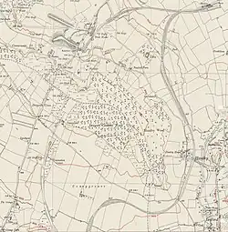 In 1849 the market town of Cheadle, population 3,000, was still without any form of rail transport. The North Staffordshire Railway had completed its Stoke to Derby line in 1848 and the Churnet Valley Line the following year but both of the lines missed the town, passing around 3.5 miles (5.6 km) to the south and north of Cheadle respectively.[1] The people of the town, along with several mines on the Cheadle Coalfield, wanted a rail connection as a means of transporting their goods. Several schemes for a branch line were proposed over the years; among these was a branch from the NSR east of Blythe Bridge and running via Forsbrook to Dilhorne and then Cheadle. Unfortunately, none of the schemes ever came to fruition.[2]