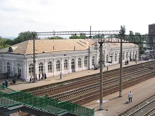 Chertkovo railway station (Russian: станция Чертково) is a former railway station in Chertkovo, Rostov oblast, Russia. It is 325 km down-line from Rostov-Glavny station and was situated between Zorinovka and Sheptukhovka on the Moscow–Rostov-on-Don line until 2017, when a bypass between Zhuravka and Millerovo was completed.[3] The station is adjacent to the border with Ukraine, just across the tracks from the Ukrainian village of Milove.[4]