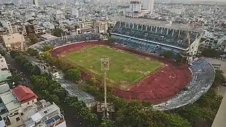 The stadium was the home stadium of SHB Đà Nẵng of the V-League until 2016, when the club moved to the Hòa Xuân Stadium. The stadium was due to be demolished in early 2018 to make way for two 33-storey blocks of flats,[2] but that effectively never happened and the stadium lies in an abandoned state, with trees growing in the stands.[3]